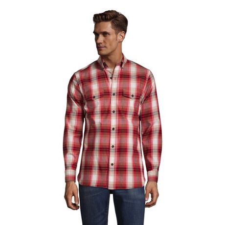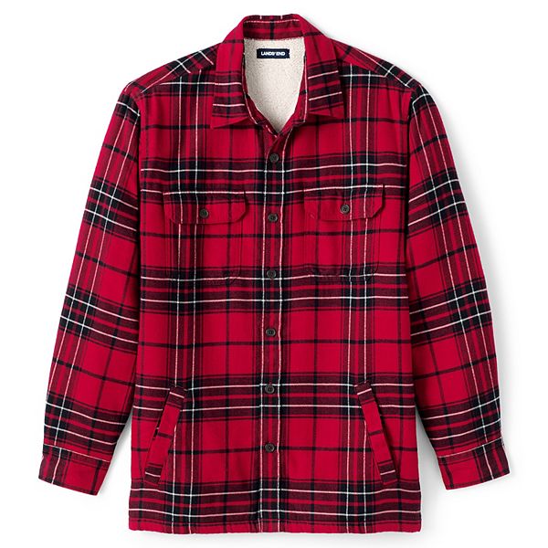 Men S Lands End Traditional Fit Plaid Sherpa Lined Flannel Shirt Jacket